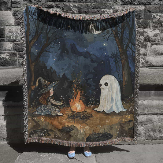 Witch Ghost Campfire Moon Throw Blanket