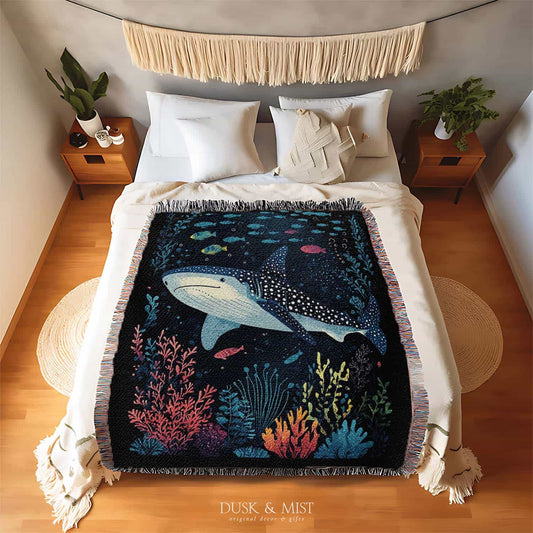 Whale Shark Coral Reef Throw Blanket