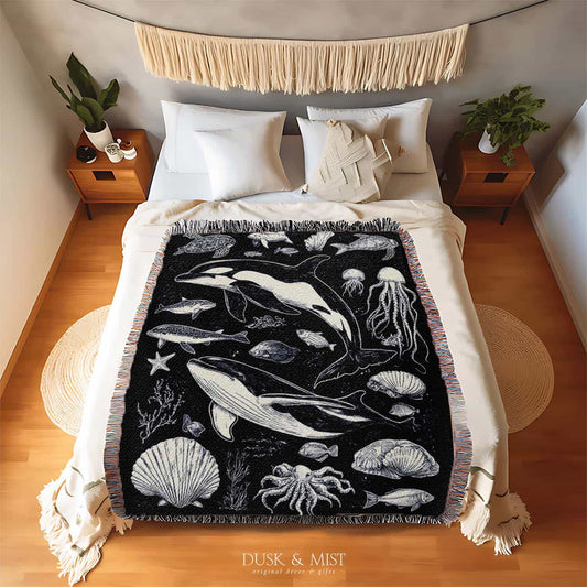 Orca Ocean Garden Woven Throw Blanket