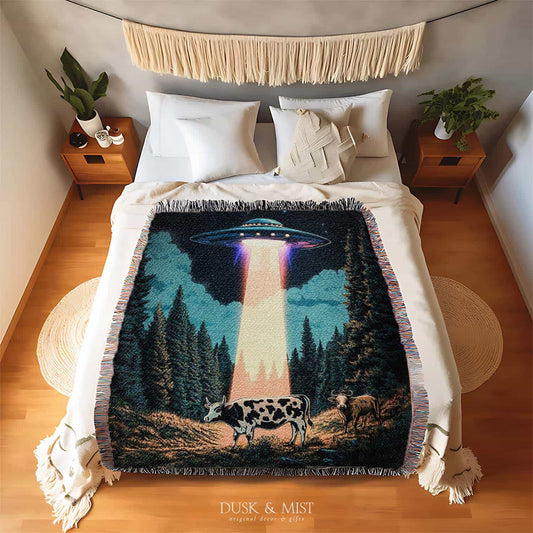 UFO Beam Cows Woven Throw Blanket