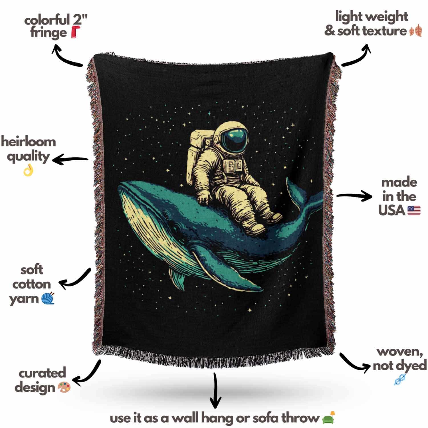 Astronaut Whale Woven Blanket